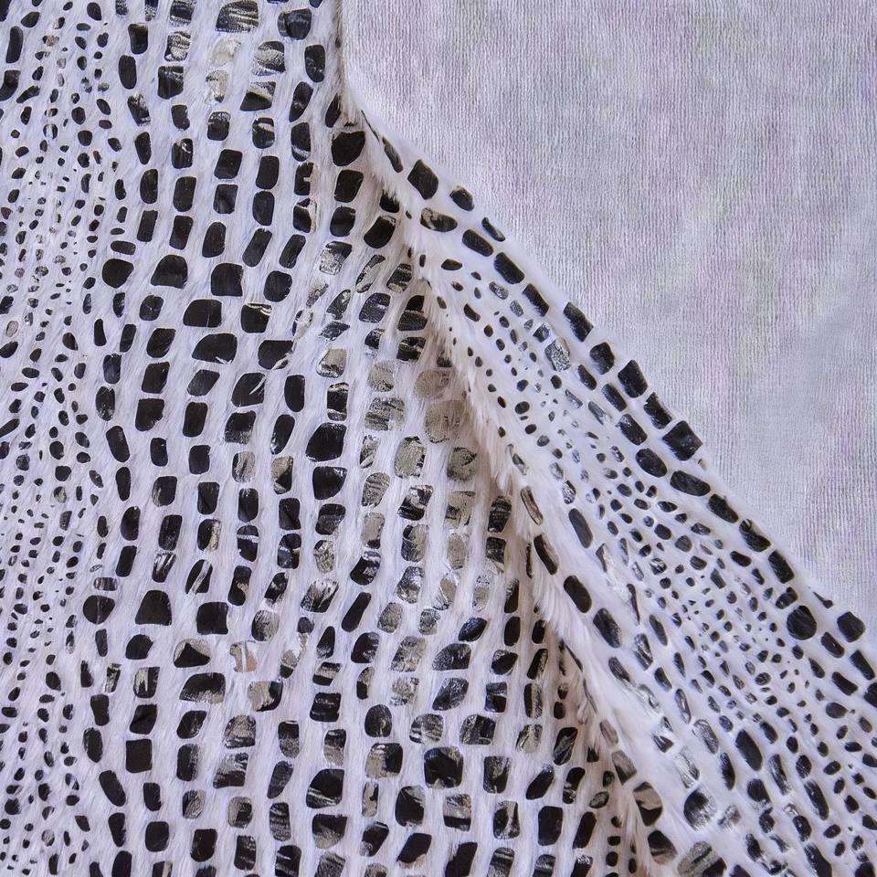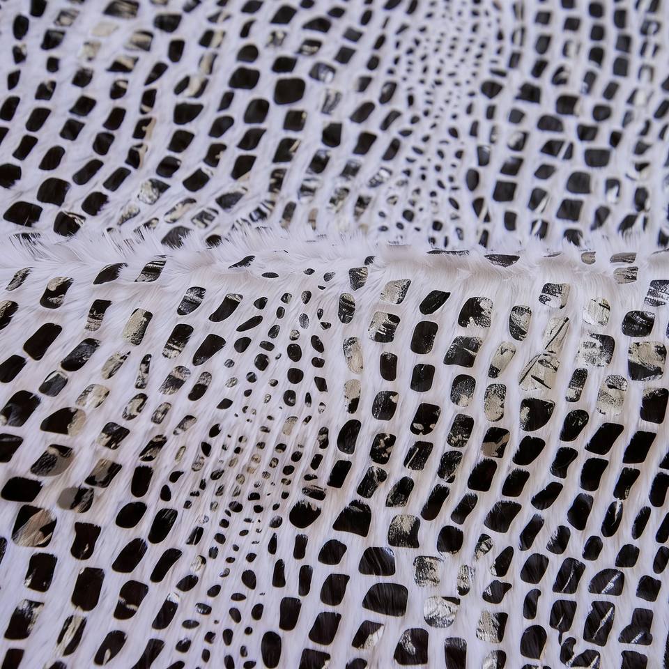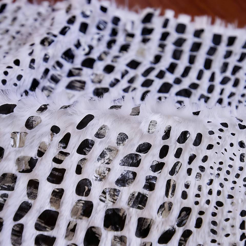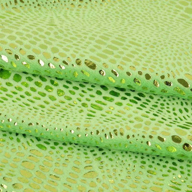 Tela de terciopelo PV de pelo largo con patrón de piel de serpiente, con estampado en relieve y transferencia térmica plateada para juguetes, terciopelo Peacock