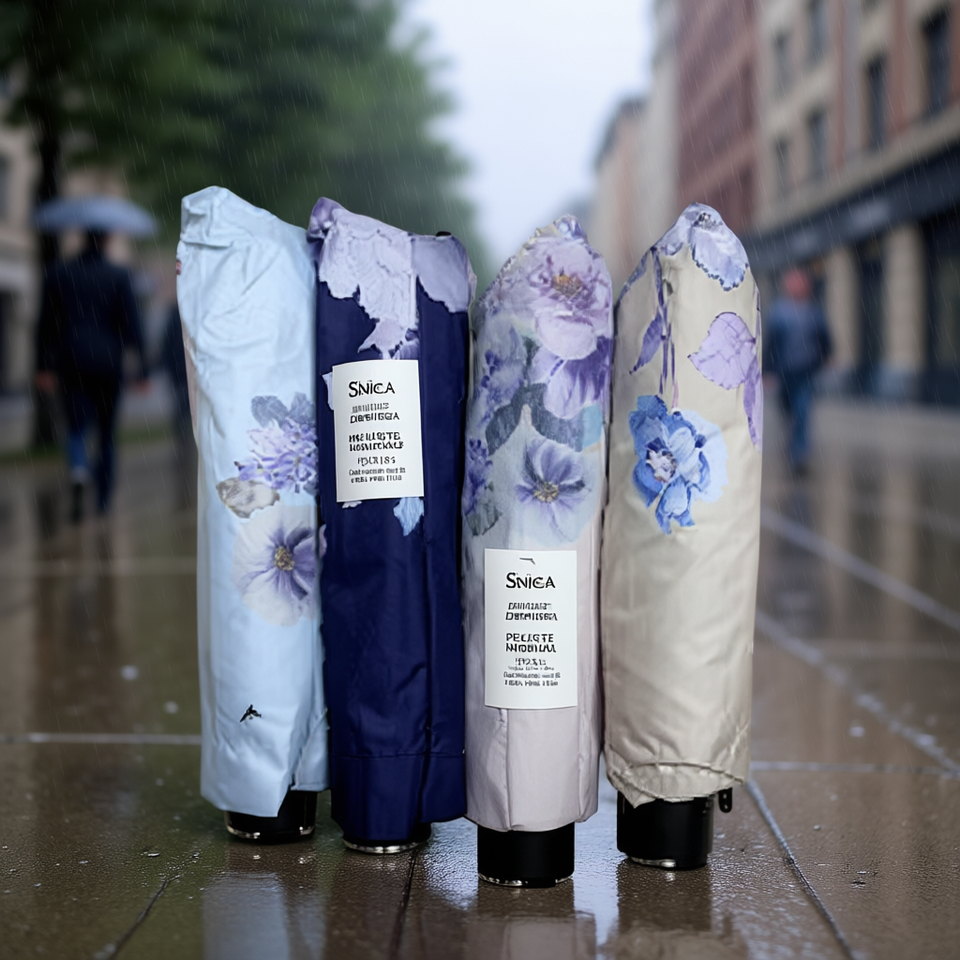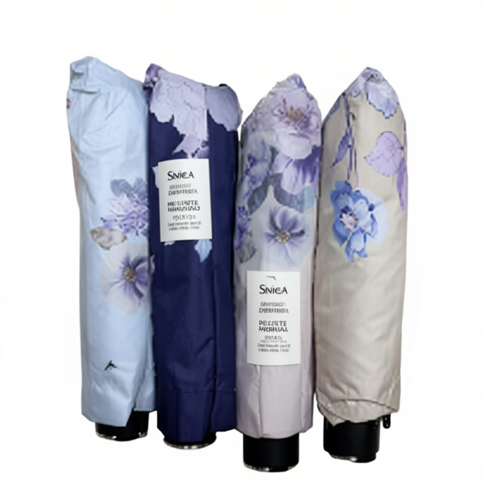 Paraguas Plegable Snica de Tres Secciones, 8 Varillas, Poliéster, Apertura Manual, Diseño Floral, Protección Solar y de Lluvia, para Viajes