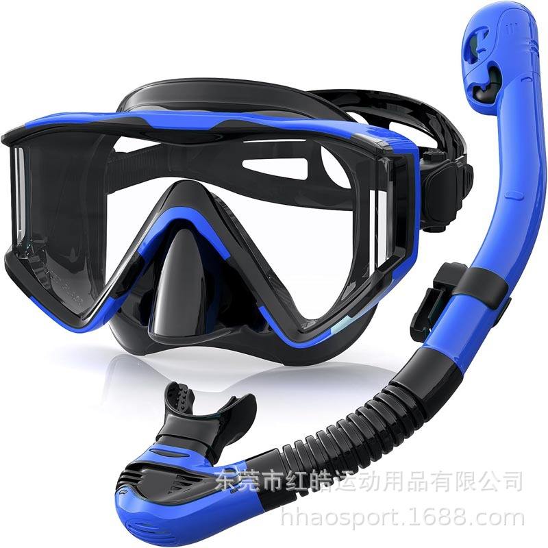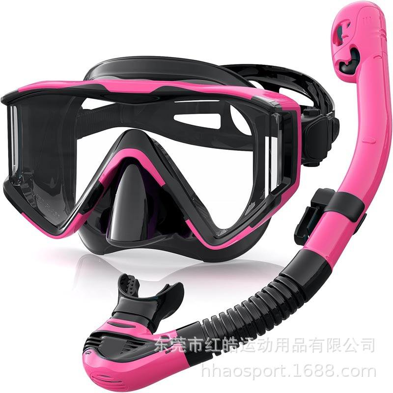 Kit de Snorkel con Máscara de Buceo de Tres Ventanas y Snorkel Completamente Seco para Adultos, PVC Negro y Rojo Rosa