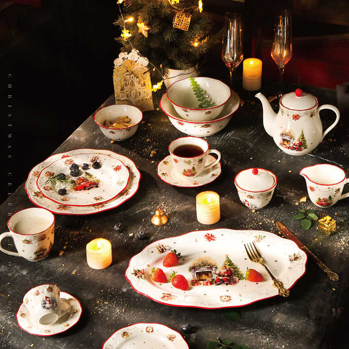 Fabricación OEM y ODM:Juego de mesa de lujo para 6 personas, personalizado y muy solicitado para cenas navideñas.