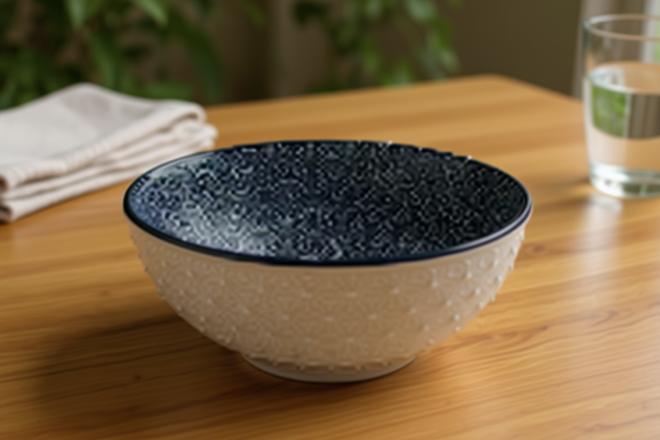 Tazón Snowflake de 6.5 pulgadas de cerámica con acabado bajo esmalte para servir comida y uso en fiestas.