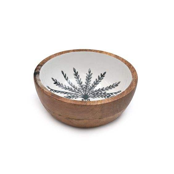 Diseño de copo de nieve Calcomanía impresa Blanco Mango de alta calidad Material de madera Servidor de alimentos Tazón Mesa