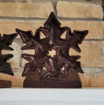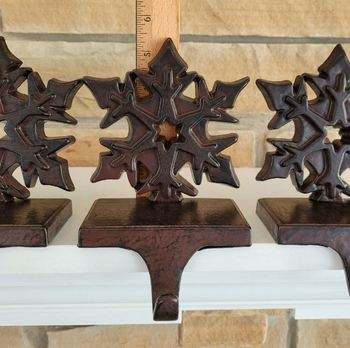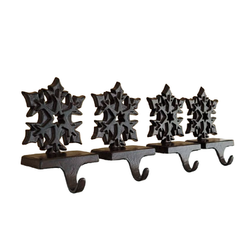 Soporte para medias con diseño de copos de nieve en metal negro de alta calidad con acabado bien pulido, ideal para decoración navideña de mesa