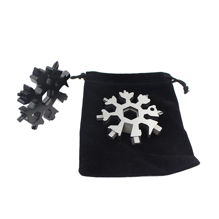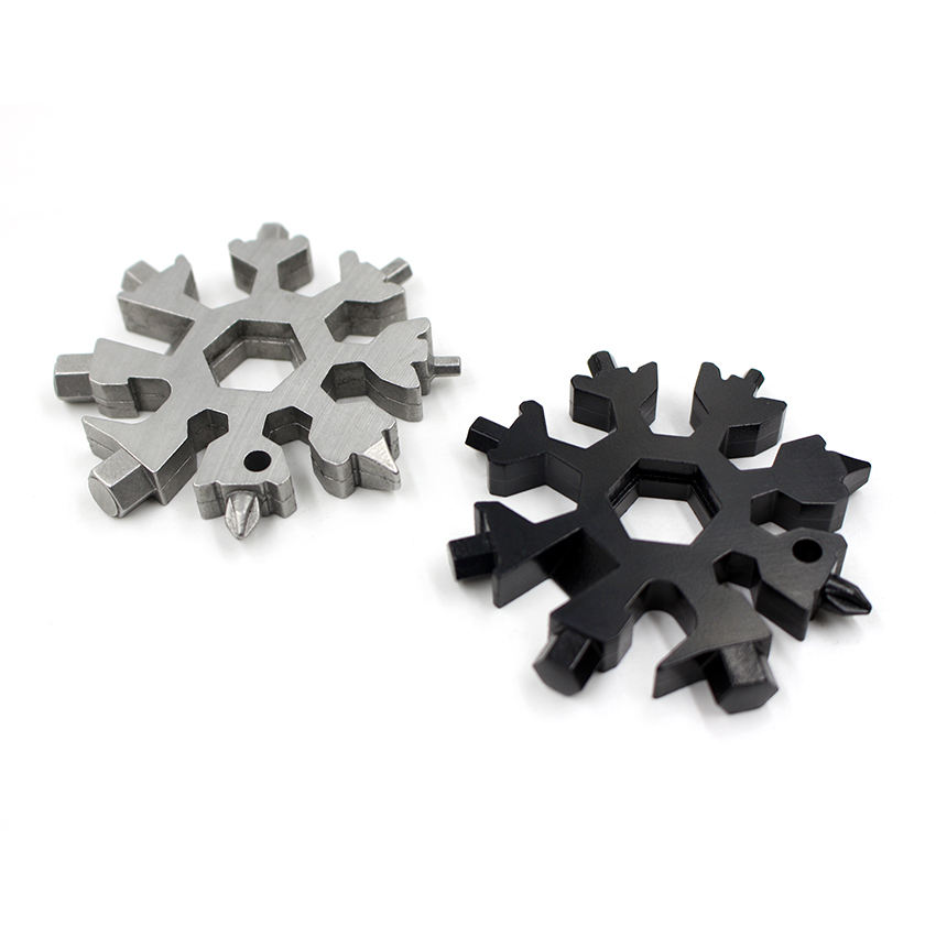Llavero de copo de nieve Multifuncional Acero inoxidable Aleación de zinc 18 en 1 Abrebotellas Forma de copo de nieve Multi herramienta