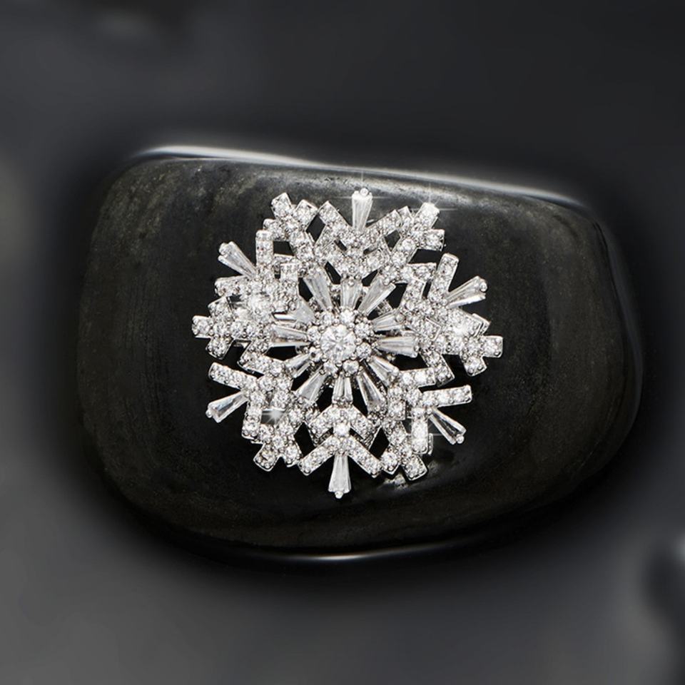 Broche Giratorio de Aleación de Zirconia con Diseño de Copo de Nieve, Ultra Hermoso, de Alta Gama, Tridimensional, para Mujer, Estilo Coreano, Elegante, para Traje o Abrigo