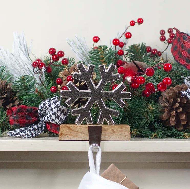 Copo de nieve con base de madera Soporte de calcetín de Navidad para chimenea de Casa Adorno de Navidad Colgador de calcetín de Navidad decoración interior