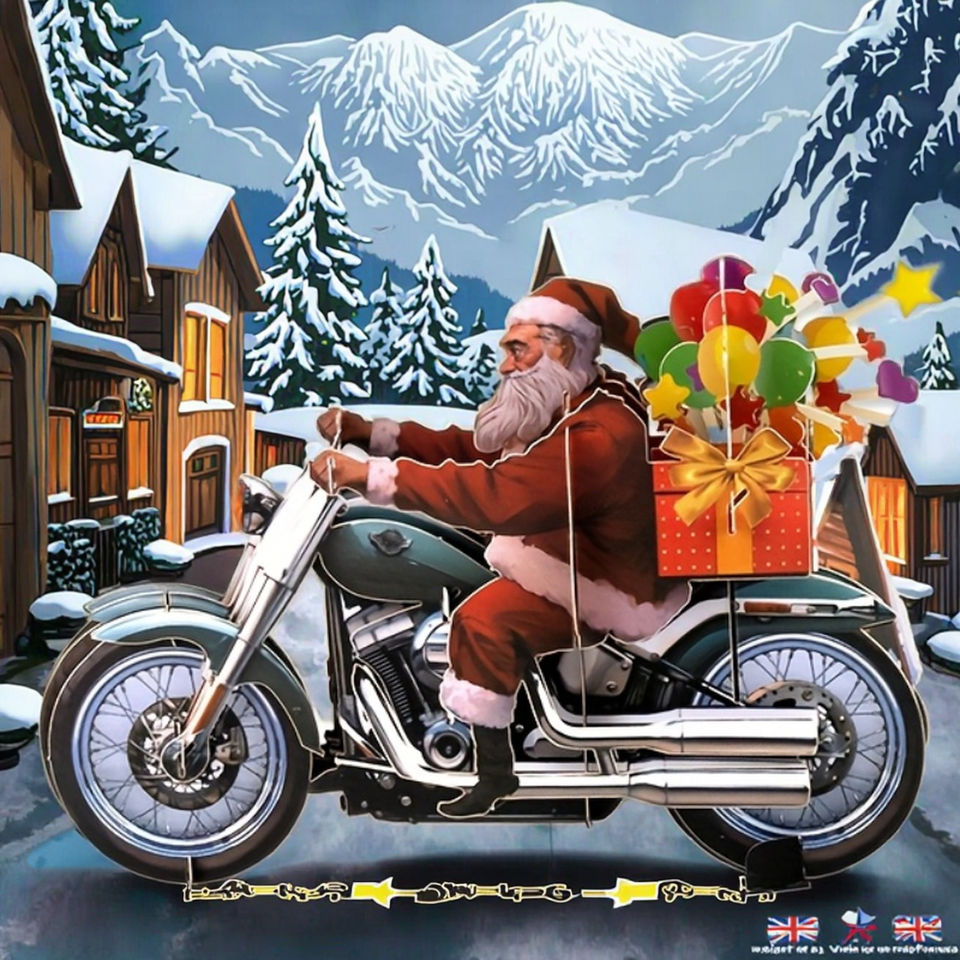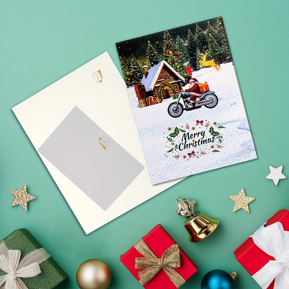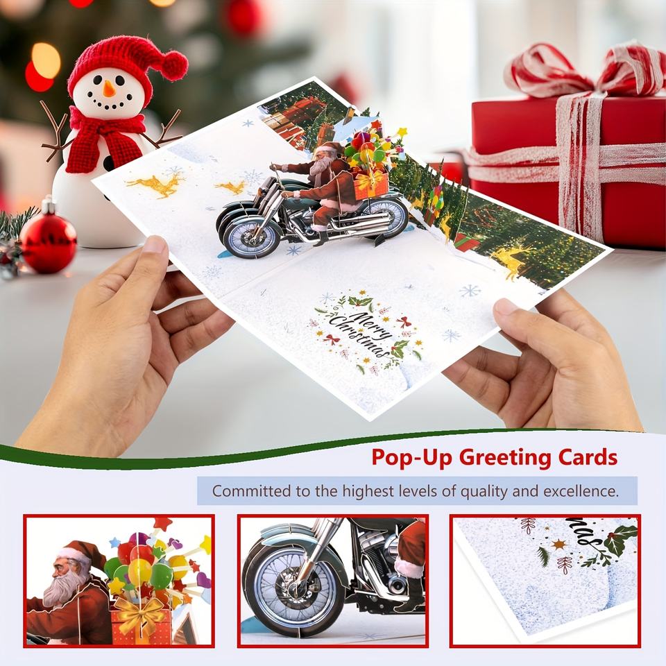 Tarjeta Pop-up de Navidad con Motivo de Moto de Nieve, Tarjeta Pop-up con Mensaje de Bendición Navideña, Papá Noel en Moto de Nieve, Regalo de Navidad con Sobre