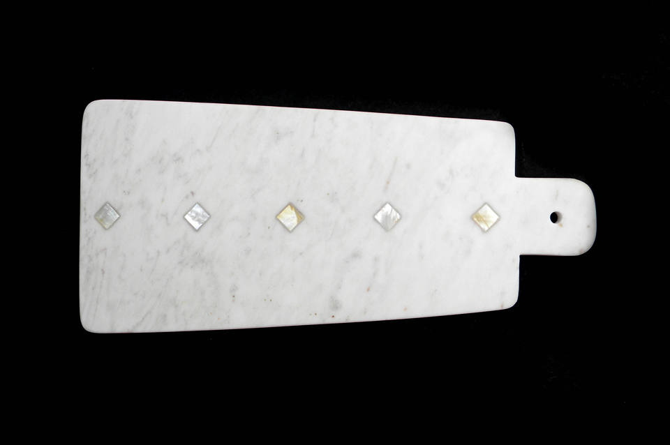 Tan respetuoso con el medio ambiente, forma de rectángulo de mármol verde natural con mango, tabla de cortar Baroda verde, bandeja de pies de goma