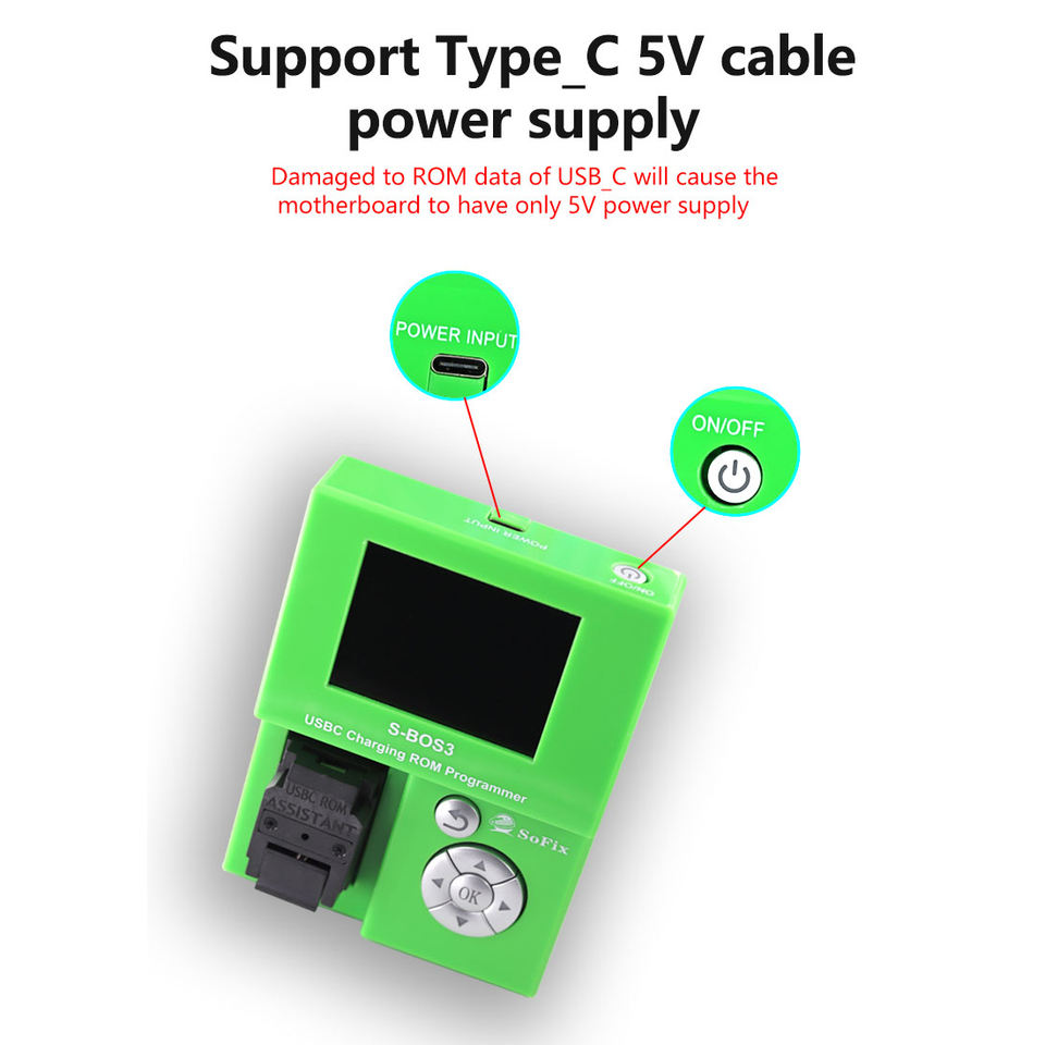 Programador de ROM con Carga USB-C SoFix S-BOS3 para MacBook (2016-2023), iPhone y iPad, Herramienta de Reparación de Datos de ROM CD3215/CD3217