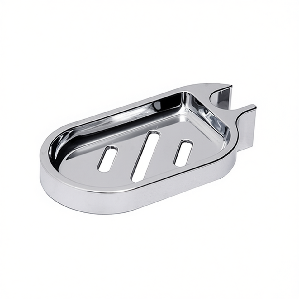 Jabonera para rieles deslizantes cromada, 9 cm de largo, 4 cm de ancho, 26.5 cm de altura