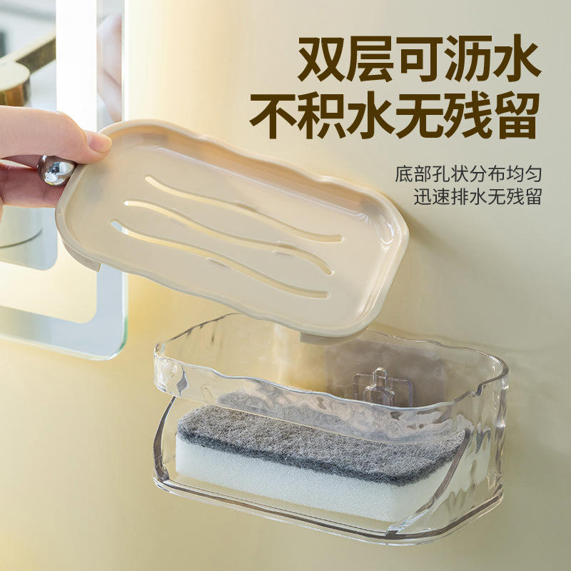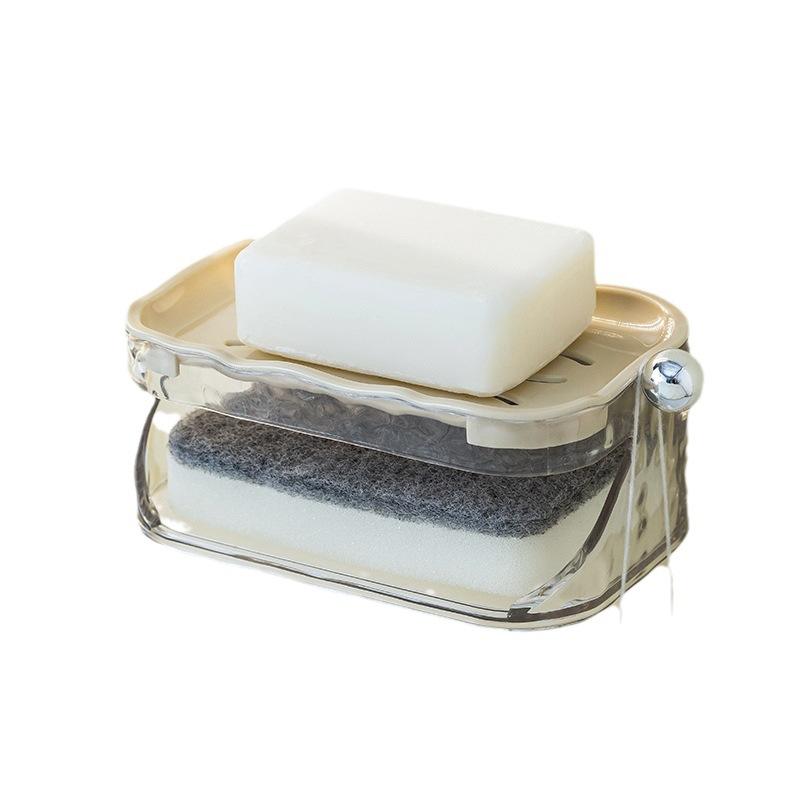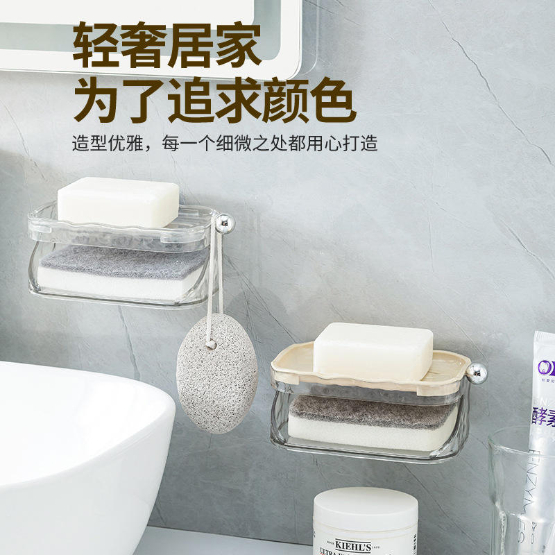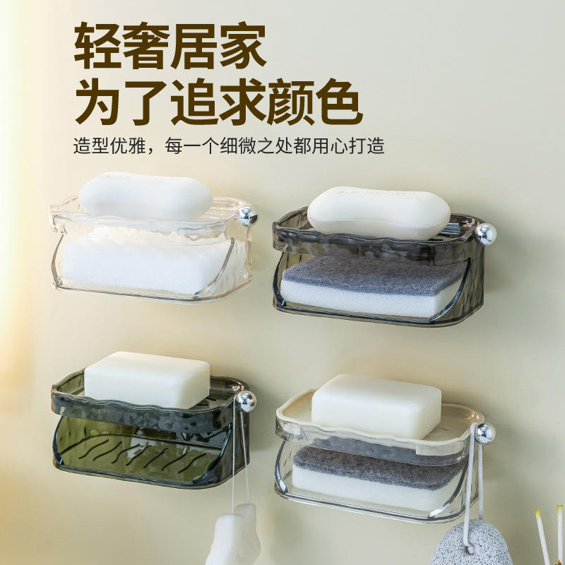 Jabonera Rectangular de Plástico Transparente Blanco Lechoso con Función de Drenaje, Estante de Almacenamiento para Baño de Lujo Ligero Gris, Sin Clavos