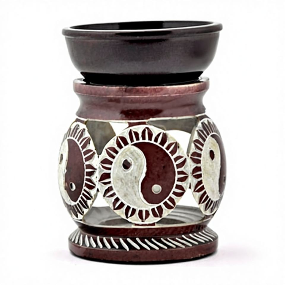 Difusor de Aceite Aromático de Piedra Jabonosa (4 Pulgadas), Quemador de Incienso Tradicional Indio Hecho a Mano con Mármol, Ecológico