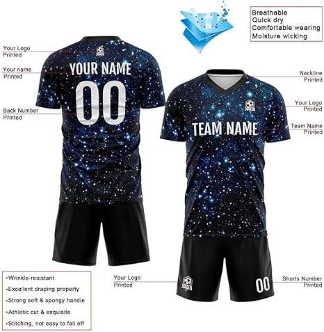 Conjunto de Uniforme de Fútbol Personalizable, 100% Poliéster, Antibacteriano, Manga Corta, Secado Rápido, Unisex, Tallas para Adultos