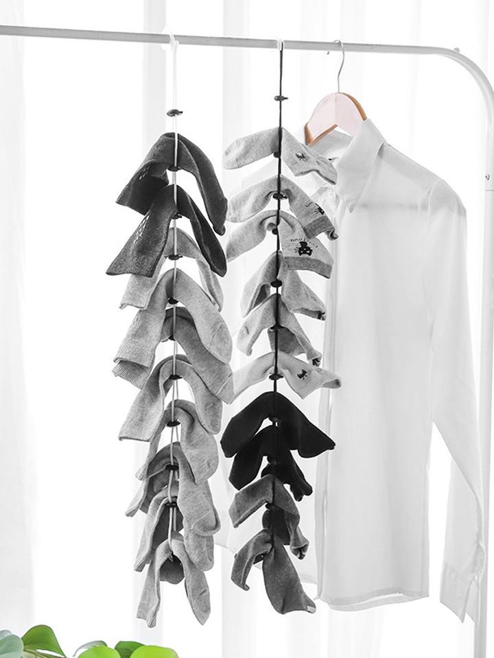 Cuerda de almacenamiento para calcetines, organizador de armario, cuerda ajustable para tendedero de lavandería, tendedero colgante resistente