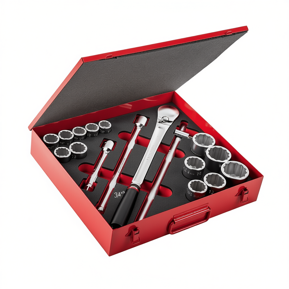 Juego de llaves de vaso de 3/4 de pulgada, 12 piezas, con trinquete y extensiones para reparación automotriz