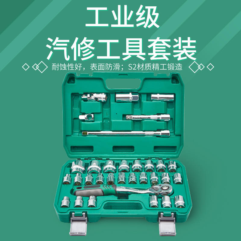 Socket Wrench Set 32 Piece 1/2 In Drive Car Repair Tool Kit With Hard Case