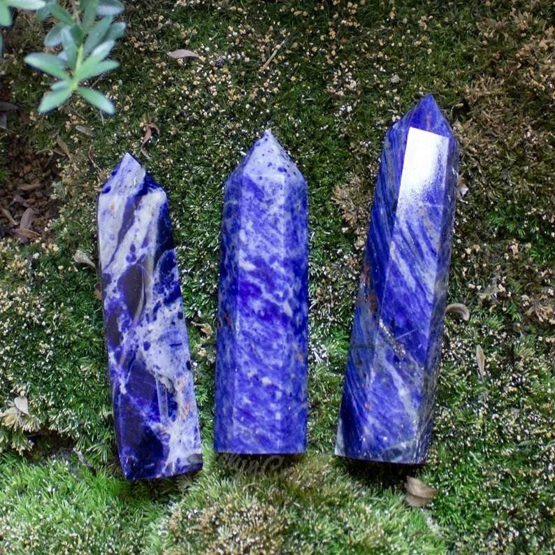 Venta al por mayor, Varita de cristal de sodalita pulida, punto de Obelisco, energía, Reiki, piedra preciosa, torre de meditación, estilo Feng Shui, nuevo estilo, lápiz