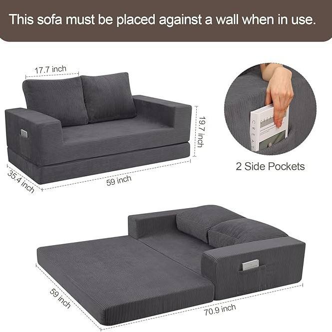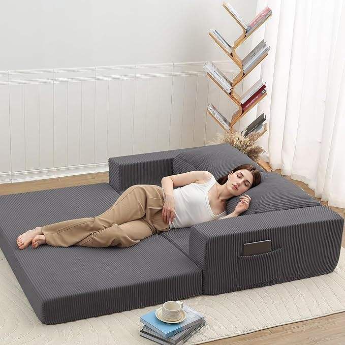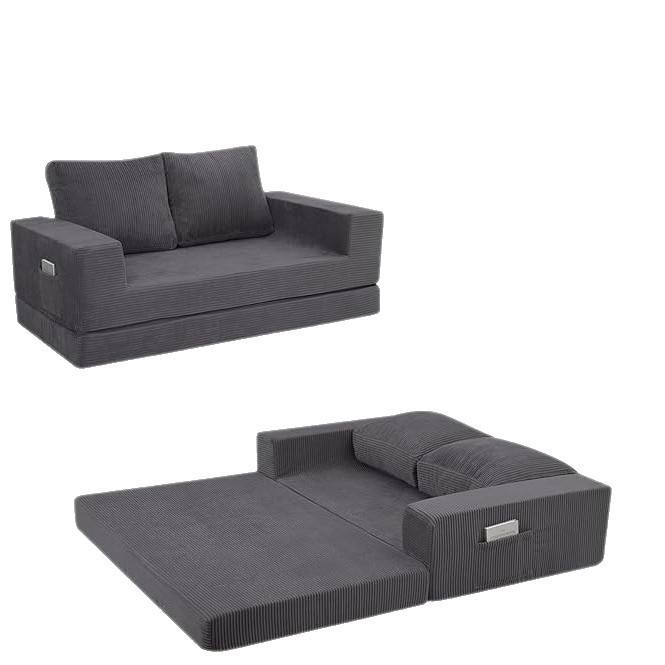 Sofá Cama Plegable de Espuma Gris Cuadrado, Mueble Convertible para Sala de Estar, Personalizable