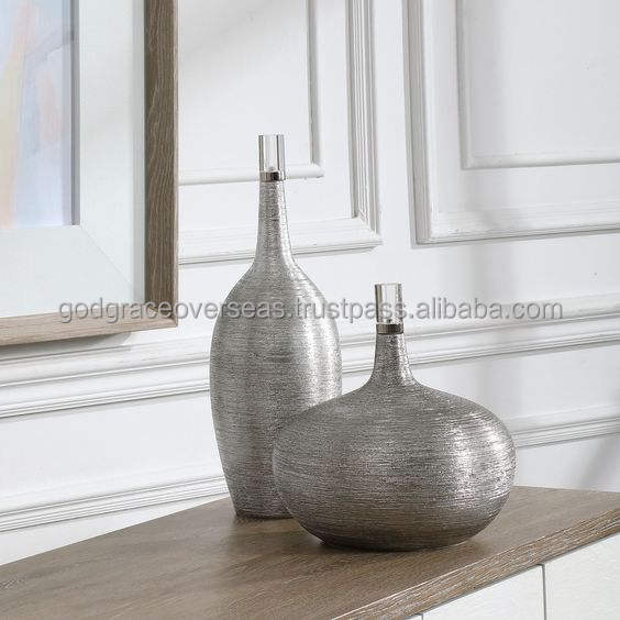 Florero de latón de lujo moderno hecho a mano con cuentas de cristal Material de hierro Sofá Lado Mesita de noche Artículo decorativo a precios razonables