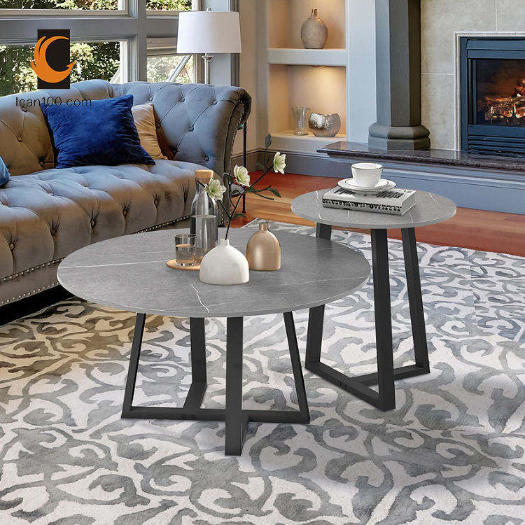 Mesa de sofá con diseño de salón, mueble de Centro de té de hierro redondo de piedra sinterizada, consola