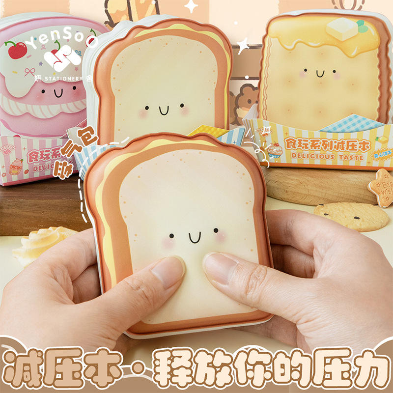 Bloc de Notas Adhesivas con Forma de Pan Tostado Suave para Niños, Libro de Música Antiestrés con Diseño de Comida de Dibujos Animados, Hecho de Papel