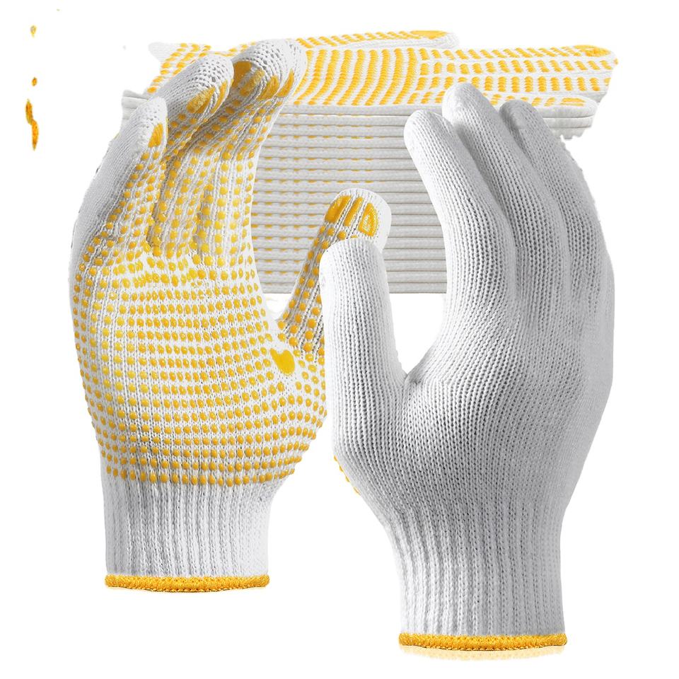 Guantes de trabajo de punto con puntos de PVC antideslizantes, transpirables y suaves, con puño elástico y forro CVC sin costuras, para construcción y manipulación.
