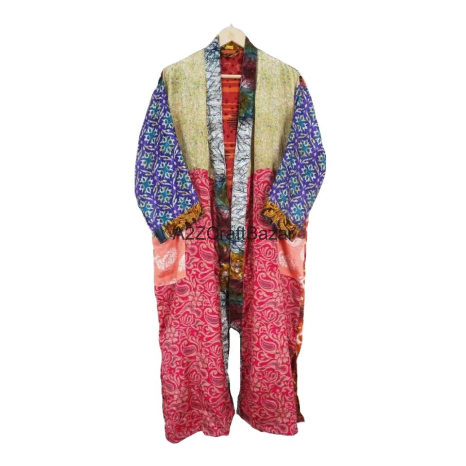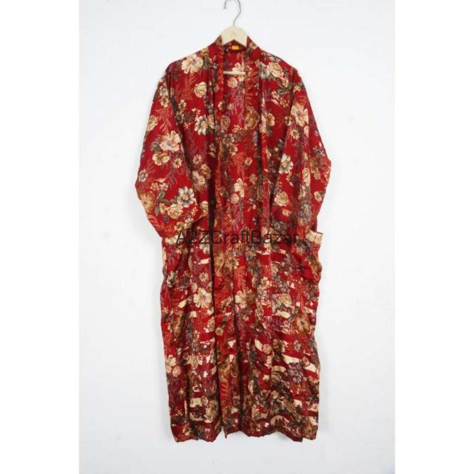 Bata de Dormir Tipo Kimono de Seda Suave y Transpirable para Mujer, Cuello en V, Cierre con Cordón, Manga Larga, Diseño de Parches, Uso en Primavera/Verano, Secado Rápido