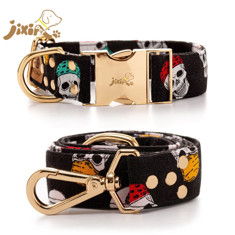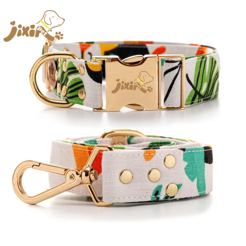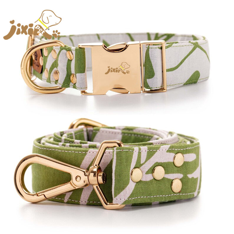 Conjunto de Collar y Correa de Algodón Suave con Diseño Personalizado para Mascotas con Hebilla de Bronce