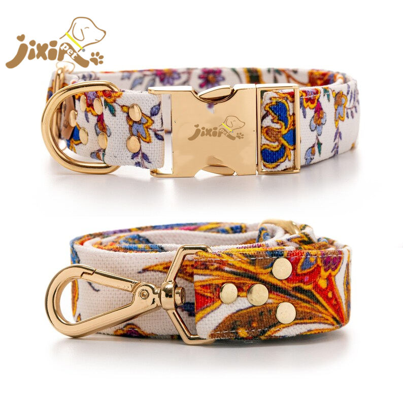Nombre del producto:Conjunto de collar y correa para perro de algodón suave con patrón personalizado