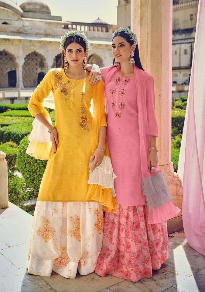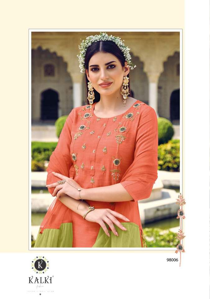 Kurta de Algodón Suave con Falda, con Bordado Intenso, Trabajo de Lentejuelas, Estampado Digital, Trabajo Manual con Espejo y Mangas Largas
