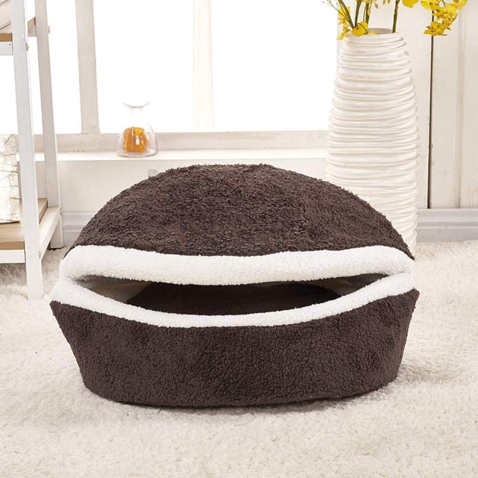 Cama de hamburguesa suave y bonita para mascotas, nido de gato, gatito, cachorro, cubierta de concha, extraíble, a prueba de viento, cálidas, para invierno