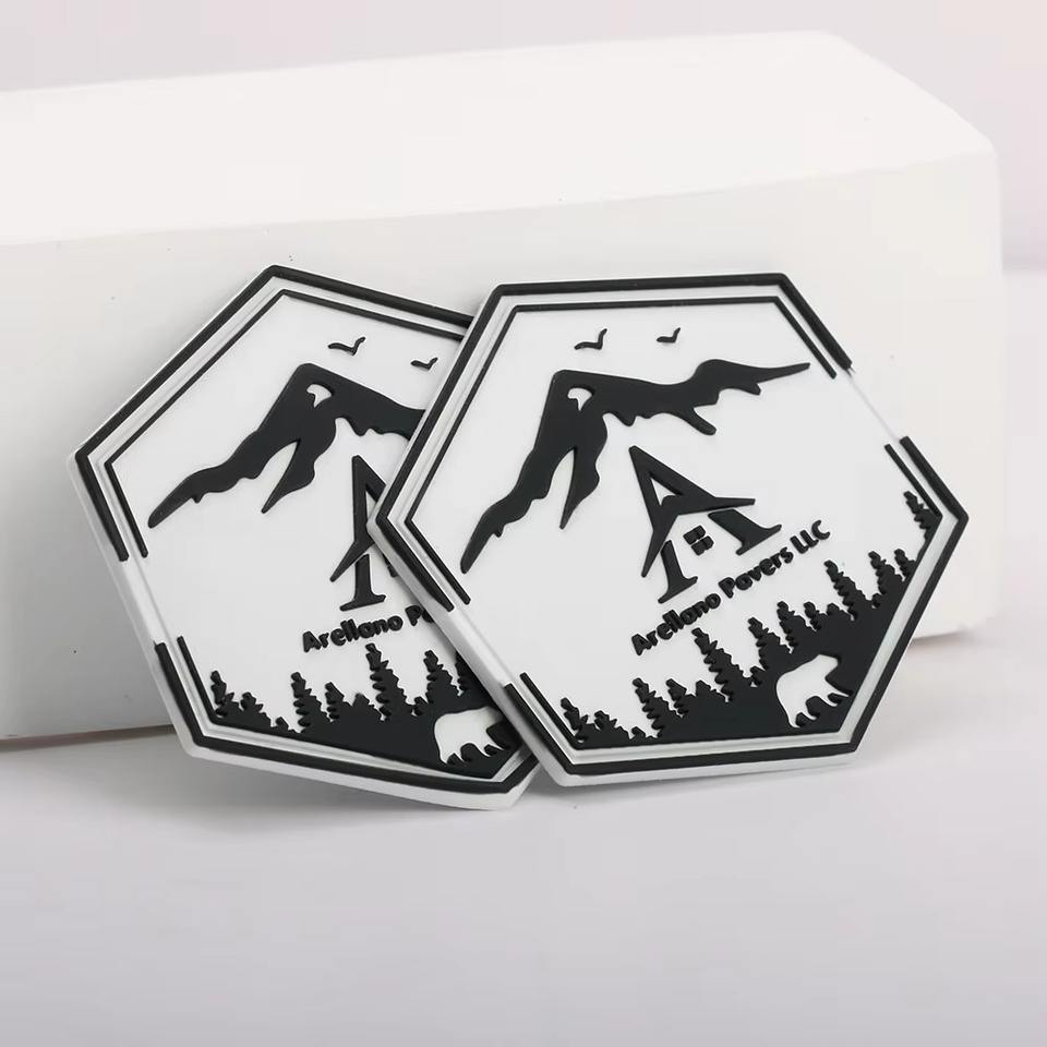 Parches brillantes de Pvc intrincados con crestas personalizadas de marca de etiquetado detallado suave