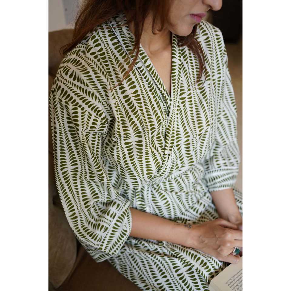 Bata de mujer Soft Dew Drops con cinturón, mangas largas, 100% algodón tejido