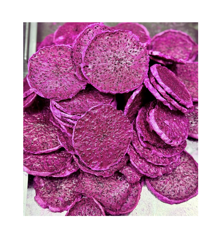 Rebanadas de Pitaya secas suaves (sin azúcar añadido): aperitivos de fruta seca de alta calidad exportados desde Vietnam.