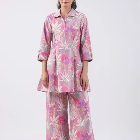 Conjunto de dos piezas de flores suaves para mujer Traje de pantalones casuales de estilo occidental para vacaciones de verano y vacaciones
