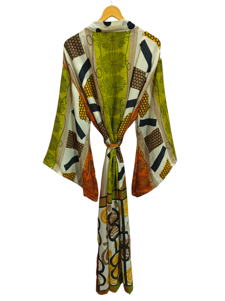 Ropa de Casa suave bata larga de seda suave playa fiesta vestido indio hecho a mano seda Kimono