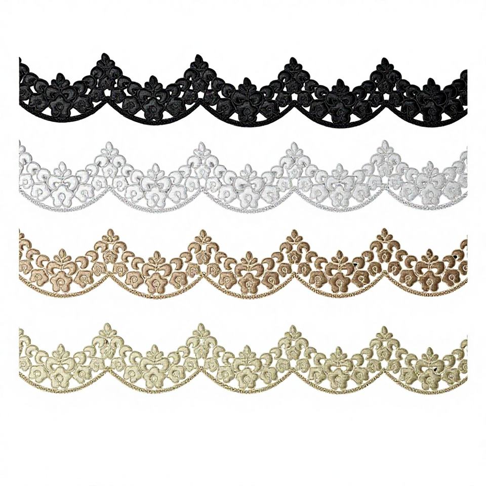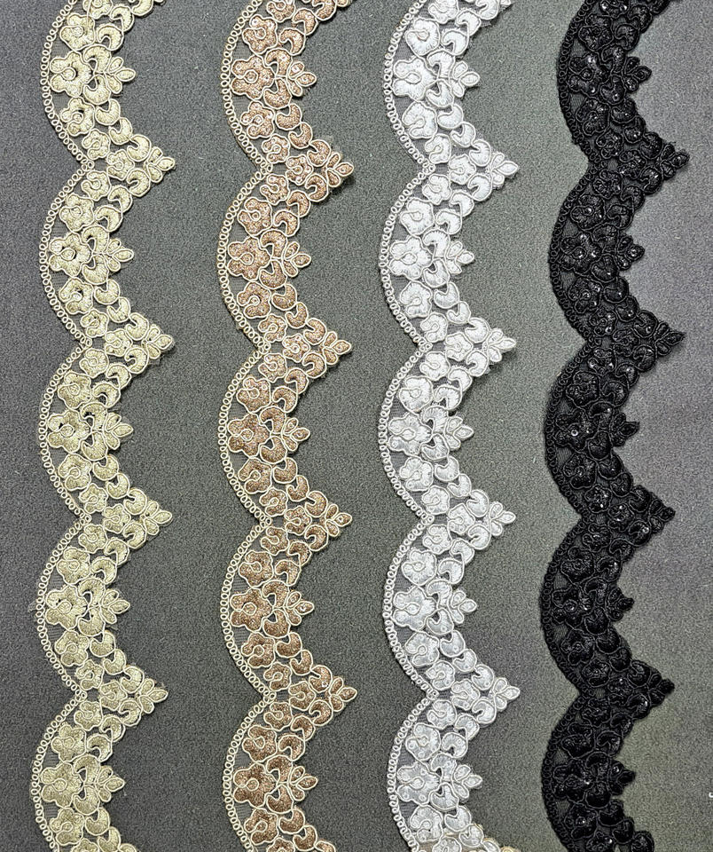 Encaje de poliéster/algodón suave con bordado metálico de lentejuelas y pedrería, tacto suave, para decoración de lehengas de novia, exportación a granel TSL