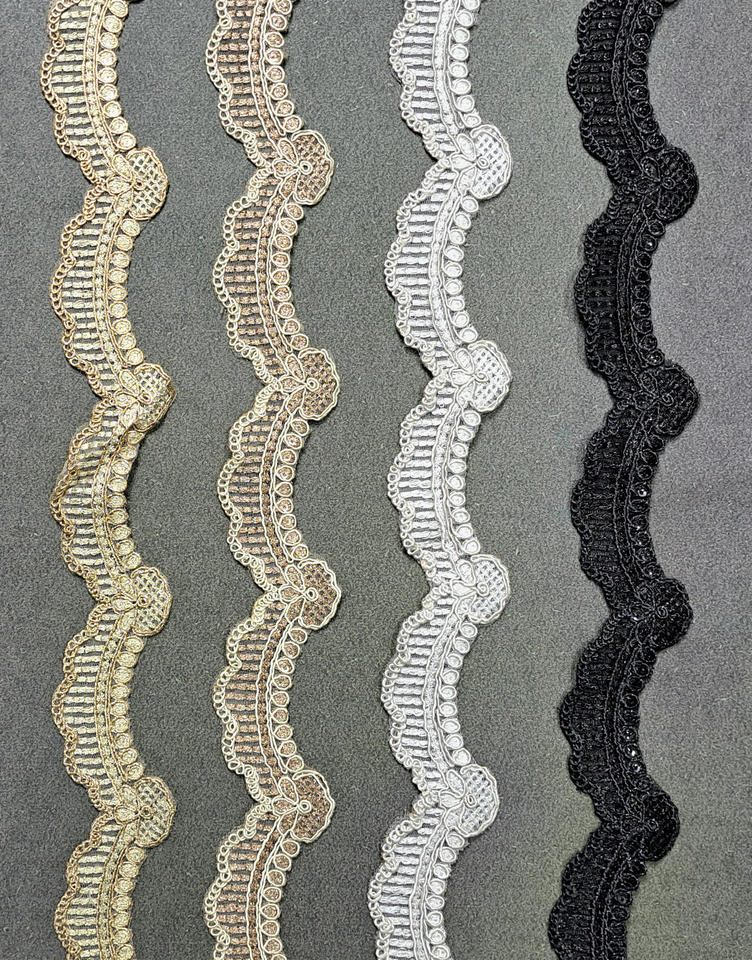 Encaje de poliéster suave con bordado metálico de lentejuelas y pedrería, tacto suave, para decoración de lehengas de novia, exportación a granel TSL 9 1"