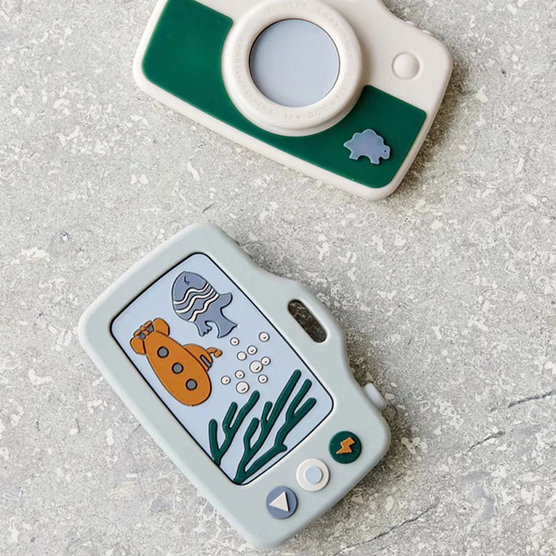 Mordedor de silicona suave para bebé, chupete de juguete con forma remota, juego de masticación calmante, anillo de cadena con sonajero, diseño de cámara infantil personalizado
