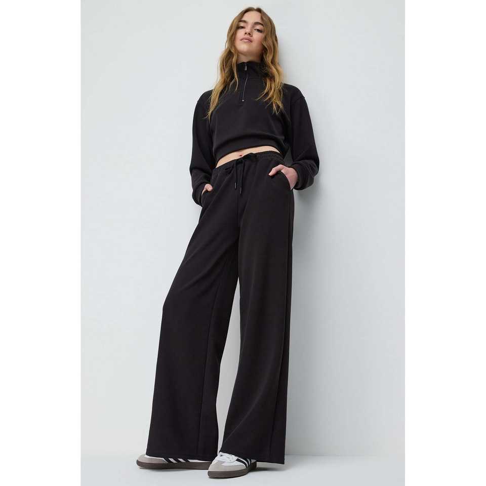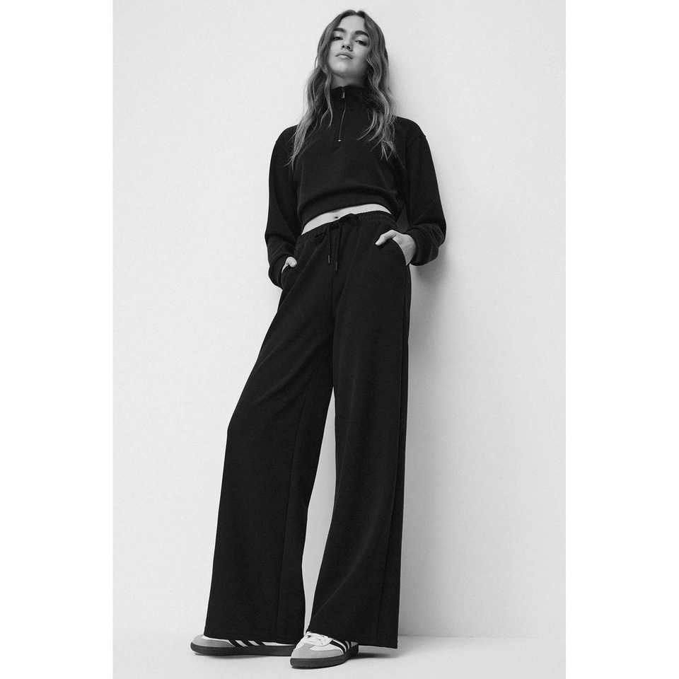 Conjunto Deportivo de Pierna Ancha con Textura Suave y Cintura Ajustable