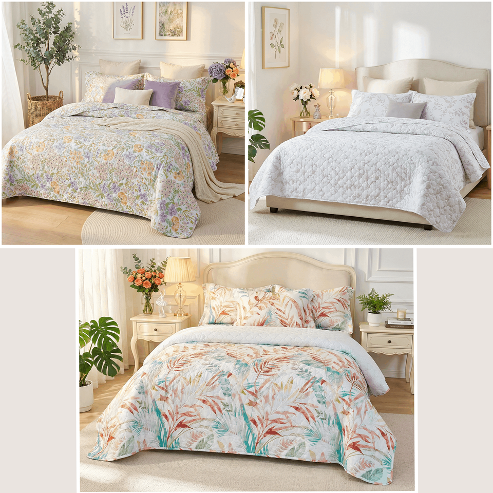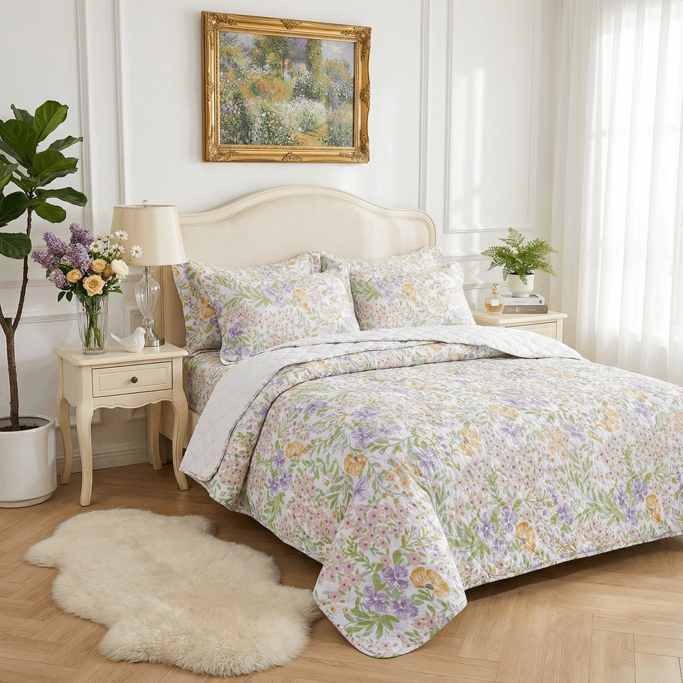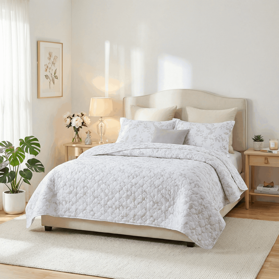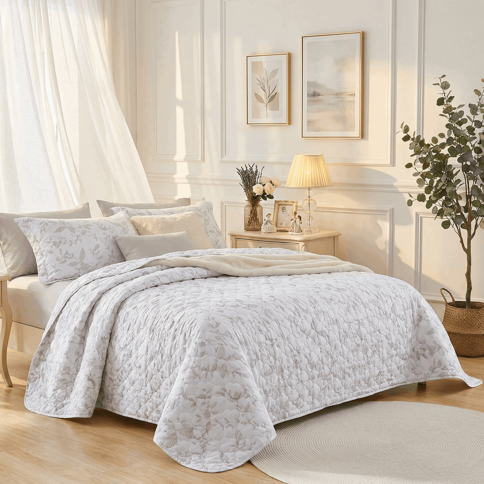 Edredón de Microfibra Suave al Tacto de 80 g/m² con Diseño de Flores en Relieve, Lavable a Máquina, Juego de Edredón Ligero