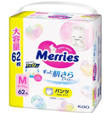 Suave al tacto y limpio Kao Merries pantalones desechables L62 pañales para bebés pañales al por mayor pañales para bebés transpirables esponjosos buena calidad