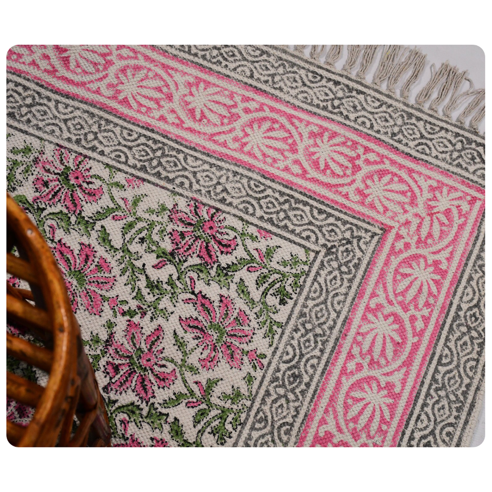 Alfombra decorativa de algodón con estampado multicolor Rosa lavable suave para dormitorio, sala de estar y hermosos interiores de casas