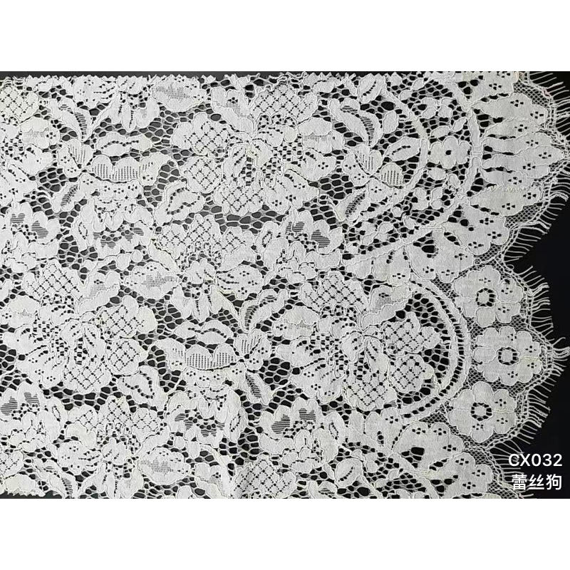 Suave blanco nupcial vestido de novia tela volante gran oferta francés pestañas Chantilly encaje poliéster Malla tela sostenible ganchillo