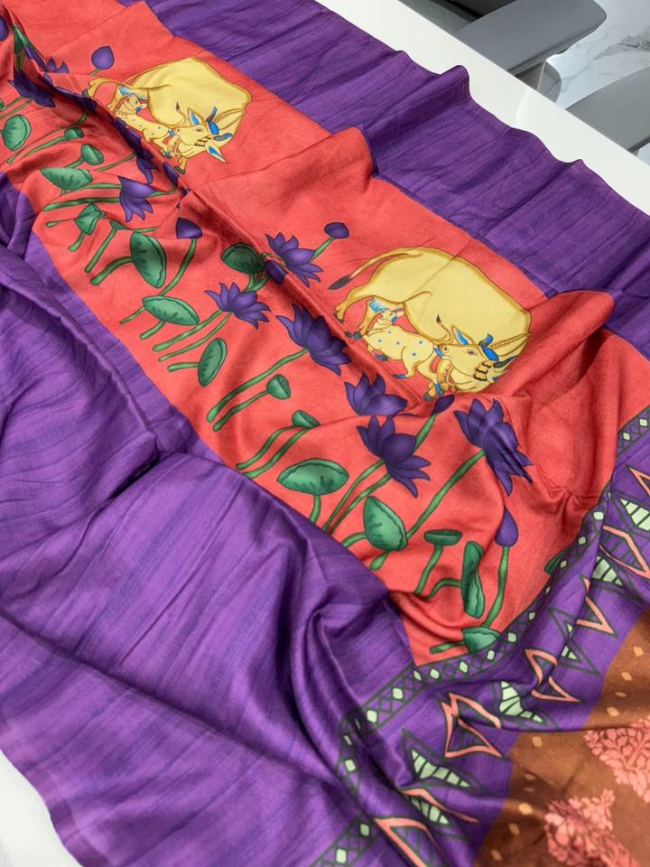 Sarees de Seda Desi Tussar Suaves para Mujer con Hermoso Estampado, Atractivo Borde en Contraste, Blusa con Estampado, Nuevos Estilos Hechos en India
