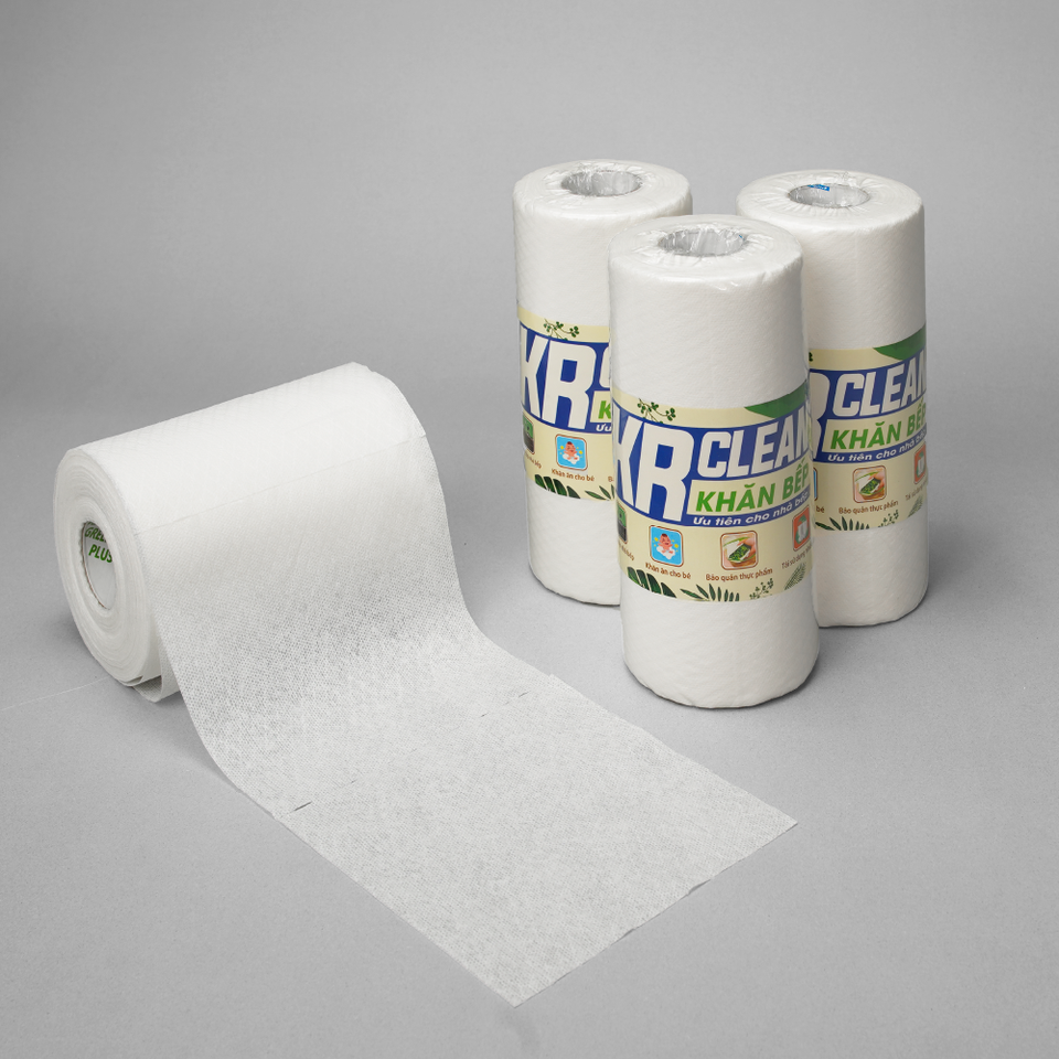 Rollo de paño de limpieza de cocina suave y absorbente, tela no tejida con ranuras, estilo liso de Vietnam