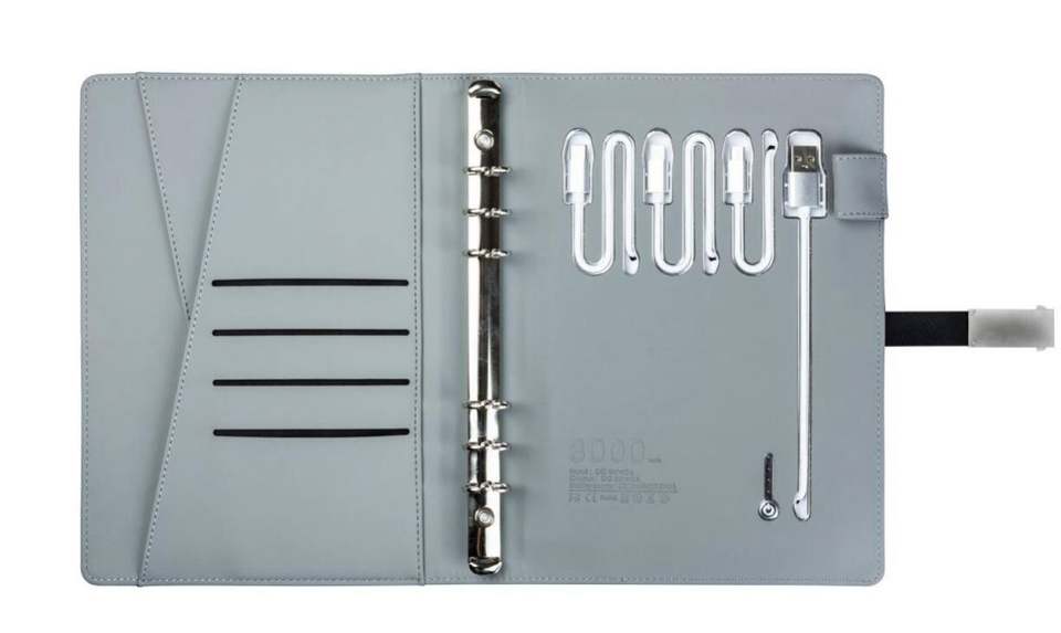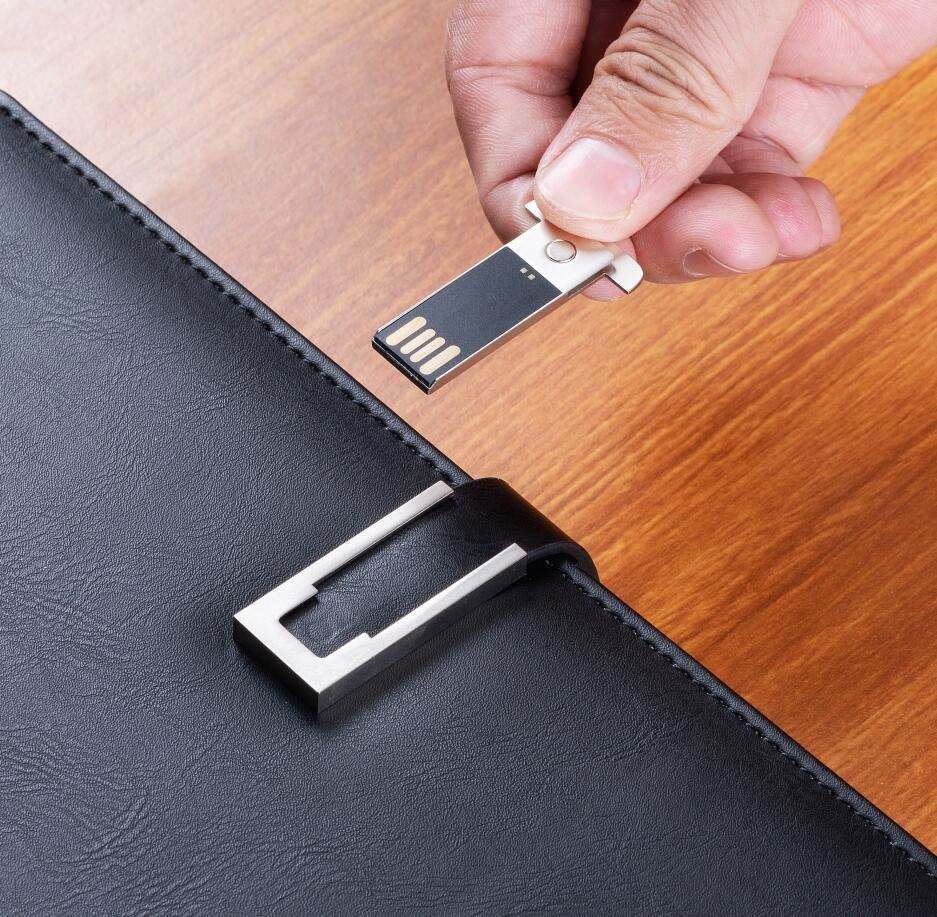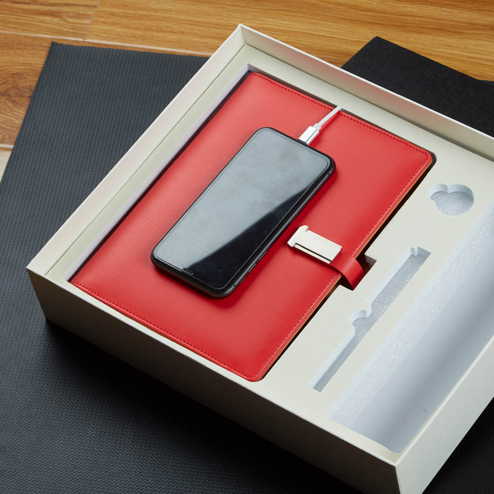 Libreta Inteligente Compacta de Tapa Blanda de Cuero Personalizable con Banco de Energía de 8000mAh y Memoria USB de 8GB con Cierre Magnético para Regalo