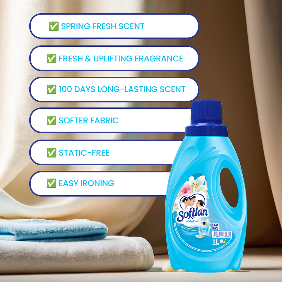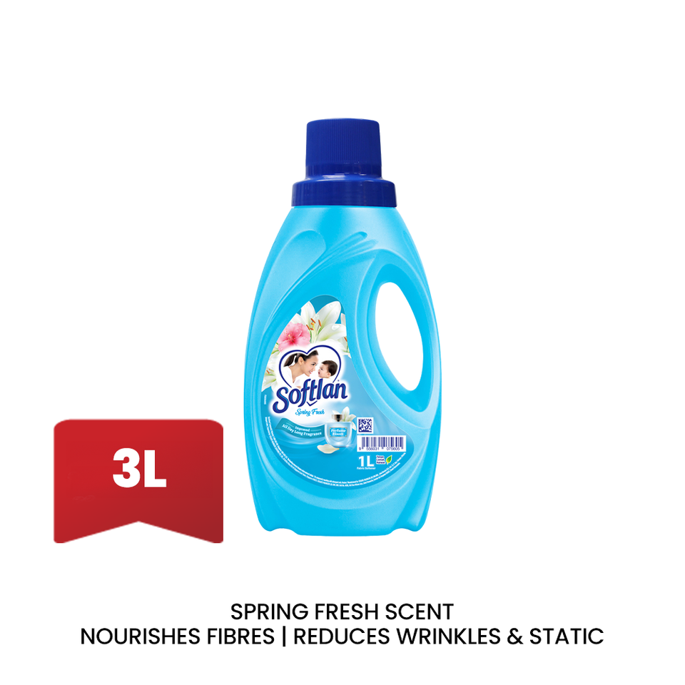 Suavizante de Telas Softlan Spring Fresh 3L, Aroma Floral, Suavidad Profunda para la Ropa y Uso sin Arrugas