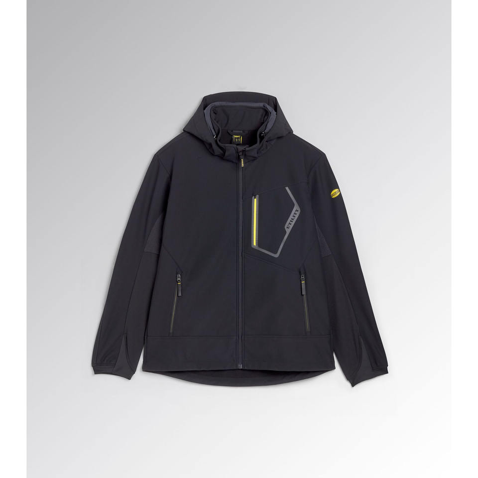 Chaqueta Diadora Softshell Evolution Negra con Capucha para Actividades al Aire Libre, Italia