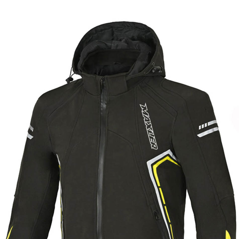 Chaqueta de motocicleta softshell con exterior impermeable y transpirable para ciudad y viajes.